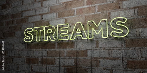 STREAMS - Glowing Neon Sign on stonework wall - 3D rendered royalty free stock illustration. Can be used for online banner ads and direct mailers..