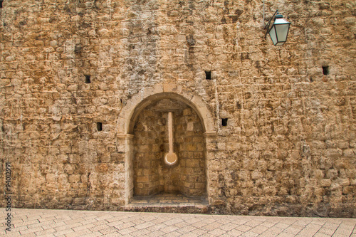 Street and old defensive stone wall in the Old town Dubrovnik, Croatia