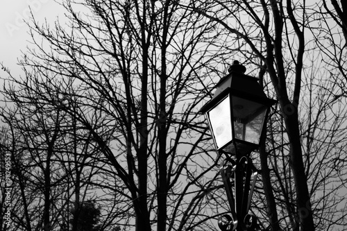lamp, light, sky, street, lantern, blue, architecture, street light, post, bulb, city, object, lighting, antique, lamp-post, illumination, street light, outdoors, black, metal, white, urban, cloud, glasses