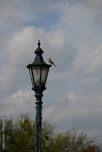 lamp, light, street, sky, lantern, blue, lighting, post, glasses, metal, lamp-post, city, street light, architecture, decorative, lamp-post, bird, cloud
