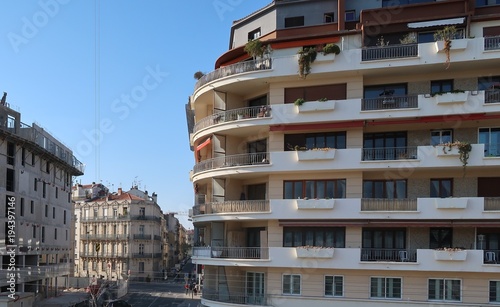 street, building, building, architecture, wall, construction, view, city, window, window, balcony, winter, exterior, montpellier, stone, concrete, france, europa, sky, travel, architectural, urban, dwelling, apartment, roof, home, landscape, scene, hotel, palm tree, tree, palm, blue, sunny