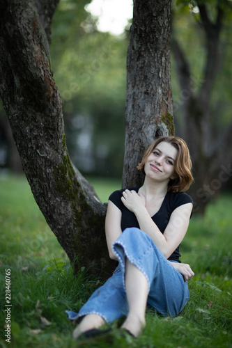 woman, young, beautiful, park, nature, grass, beauty, green, summer, people, tree, forest, outdoors, portrait, happy, person, happiness, smile, sitting, 1, relaxation, spring, smiling, hair