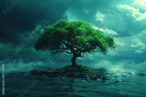 Strength: A tree standing tall in the middle of a storm, representing resilience and inner strength