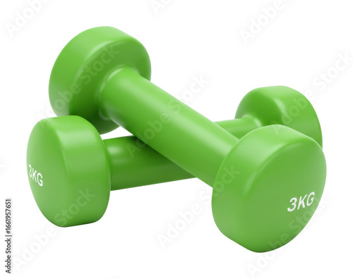 Strength training action with green dumbbells in home gym environment for fitness enthusiasts isolated PNG