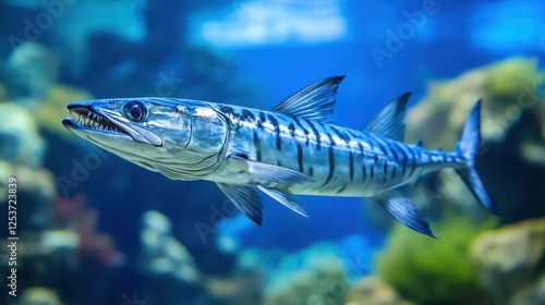 Striking Barracuda Swimming Gracefully in Vibrant Ocean Environment