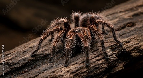 Striking Close-Up of a Hairy Tarantula on Wood.