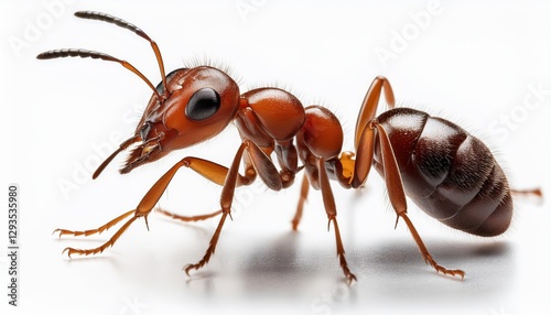 Striking CloseUp of a Vibrant Worker Ant in High Definition, Showcasing the Intricate Textures and Colors of this Fascinating Insect against a Clean White Background, Ideal for Detailed Analysis