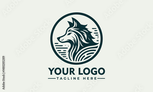 Striking Line Art Illustration of a Wolf Head Profile within a Circular Frame. Animal Illustration Concept