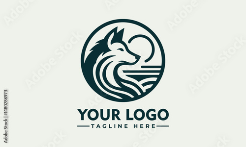 Striking Line Art Illustration of a Wolf Head Profile within a Circular Frame. Animal Illustration Concept