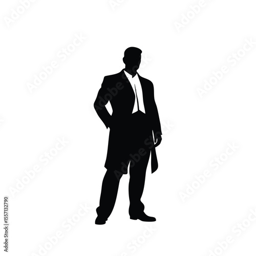 Striking silhouette of a man in a suit with hands in pockets, perfect for business logos, posters, or art prints
