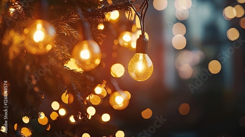 string lights being hung, close-up on the glowing bulbs and festive atmosphere, warm and inviting light
