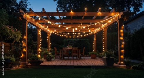 string, light, draped, over, wooden, pergola, garden, night, bridge, city, architecture, river, light, building, travel, water, urban, miami, evening, china, temple, sky, landscape, city landscape