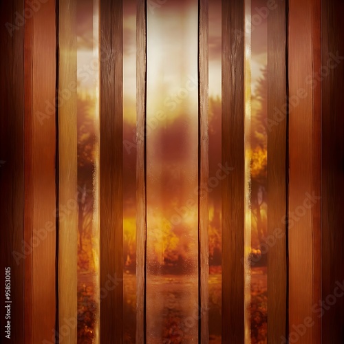 Striped wooden background on beautiful blurred autumnal wallpaper