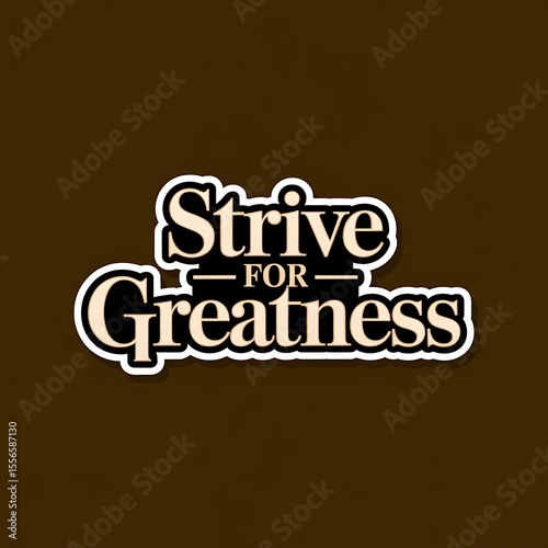 Strive for Greatness—trophy badge design, elegant serif font, gold and black palette, with thick white sticker-style outline around the design