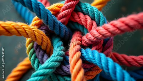 Strong attachment demonstrated through colorful ropes intertwined in unity circle representing teamwork and partnership synergy