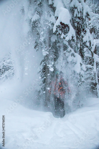 tree branch, chill, close, closeup, cold, covered, day, forest, freeze, frost, landscape, light, nature, needle, pine, pine tree, plant, season, seasonal, snow, snowfall, snowy, spruce, strong, tree, white, winter, wood, man, snowboarder