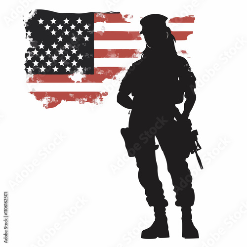 military, woman, silhouette, us, flag, vector, illustration, patriotism, courage, bravery, nationalism, empowerment, female, american, pride, soldier, army, powerful, freedom, independence, symbol, oneness, strength, national, honour, banner, stripes, star, inspiration, portrait, character, uniform, defense, service, veteran, salute, identity, graceful, heroism, determination, justice