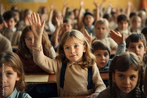 student, school, children, learning, teacher, hand, children, person, building, architecture, classroom, portrait, girl, education, clothing, people, adult, photo, downloadable, environment, audience, human, room, boy, attention, happiness, female, image, real, togetherness, gesticulate, teaching, apparel, indoor, looking, sitting, smiling, class, glove, raise, male, seek, your, hd