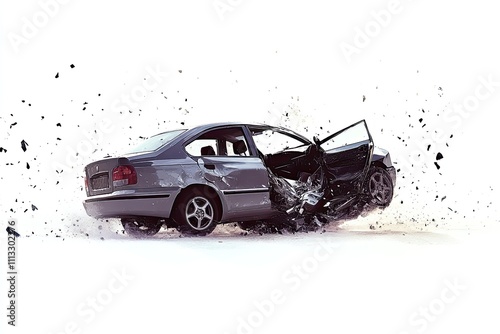 Studio depiction of a rollover crash involving a 4x4 SUV isolated on white