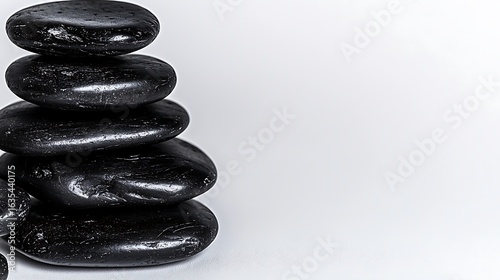 Studio image of vertically balanced smooth stones, 50mm lens capture, showcasing texture contrast and calm composition with gentle light and shadow on white background