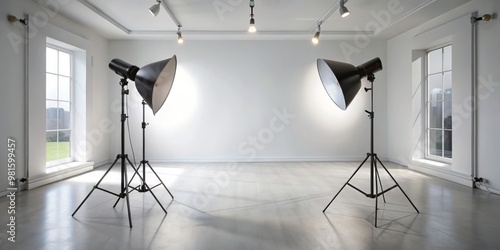 Studio Photography Setup with Two Lights, White Walls, and Concrete Floor, photography, studio, lighting
