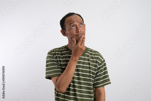 man, white background, person, question, thinking, brainstorming, memory, facial expression, idea, decision, gesture, studio, thought, confusion, expression, choice, solution, contemplation, reaction, ask, asking, choose, confuse, confused, contemplating, curious, difficult, doubt, forget, imagining, male, plan, planning, questioning, question, serious, solution, thinks, thought, thoughtful, uncertain, uncertain, what, why, wonder, wondering, worried