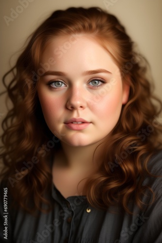 studio, portrait, well, fed, girl, black, shirt, beige, background, curly, hair, beautiful, brunette, wavy, coiffure, natural, healthy, shiny, volume, long, lock, brown, texture, closeup, fashion, style, elegance, femininity, glamour, blurred