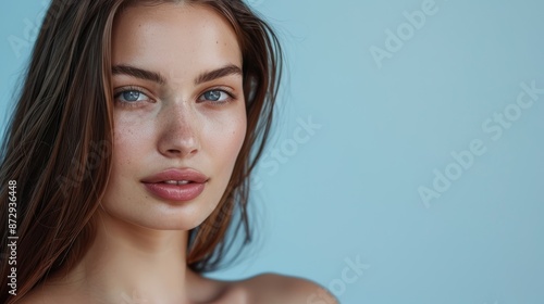 woman, care, cosmetic, hair care, background, skincare, growth, result, serious, aesthetic, shine, salon, hairdresser, portrait, skin, model, face, female