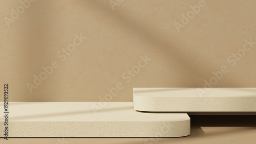 Studio setup 3D render featuring layered beige podium forms against a warm neutral backdrop. Designed as a commercial product mockup scene with clean negative space for branding headlines