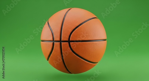 Studio shot of a basketball against a bright green background representing the sport