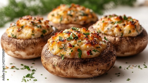 stuffed, mushroom, cheese, baked, herb, epicure, food, vegetarian, delicious, side dish, baking, savoury, dish, tasty, meal, white, cooking, isolated, closeup, healthy, cheesy, flavorful, fresh, gourmet food, roasted, kitchen, food photography, plating, comfort food, modern style, white background
