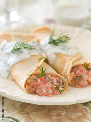 salmon, sauce, food, battercake, stuffed, cream, dill, delicious, snack, wheat, eatery, epicure, favor, dinner, eat, healthy, lunch, sandwich, starter, cookery, appetising, menu, fresh, fish, seafood
