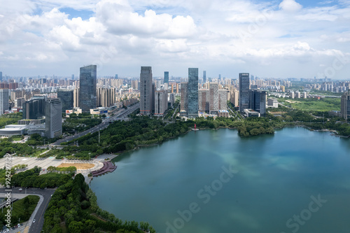 aerial photography, china, aerial view, city landscape, modern architecture, city landscape, greenery, skyline, lake, nature, cloud, blue water, park, city life, travel destination, vivid colors, panoramic view, summer day, business district, exploration, avocation, tour tourism, relaxation, scenic beauty