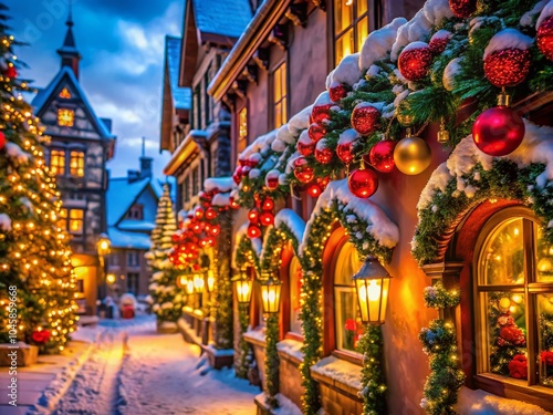 architecture, christmas, celebration, holiday decorations, urban, winter, snow, ambience, city landscape, nightlife, warmth, seasonal, event, photo, exterior, enchanting, illuminated, cultural, holiday season, bright, creative, streetscape, decorative, joyful, picturesque, charming, traditional, modern, community, gathering, winter landscape, cosy, inviting, scenic, festive season, city landscape