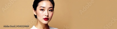 Stunning Asian woman with sophisticated makeup look on a neutral beige backdrop, beige background, luxury lifestyle, beauty photography