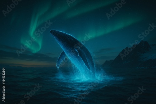 whale, ocean, aurora, borealis, northern, light, nature, wildlife, sea, water, sky, night, star, mountain, landscape, animal, creature, marin, mammal, majestic, powerful, blue, glowing, vibrant, spectacle, natural, phenomena, underwater, deep, fantasy, dreamlike, aethereal, magical, serene, peaceful, adventure, exploration, discovery