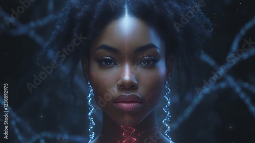 Stunning Black Woman Portrait Digital Art with Glowing Lines