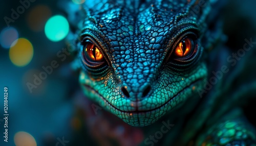 Stunning Blue Lizard Closeup with Glowing Eyes
