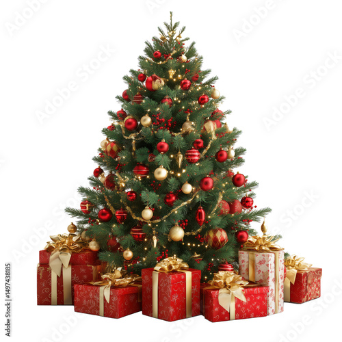 Stunning Christmas Tree with Gifts , isolated on white background png