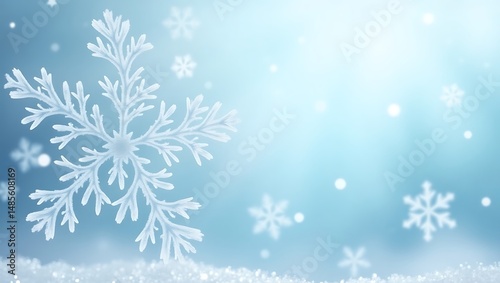 Stunning Close-Up of a Delicate Snowflake on a Soft Blue Background