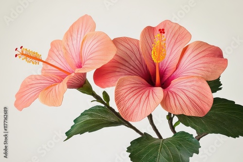 Stunning Close-Up of Vibrant Hibiscus Flowers in Detailed Studio Lighting Against a Simple White Background for Artistic and Nature-Themed Projects