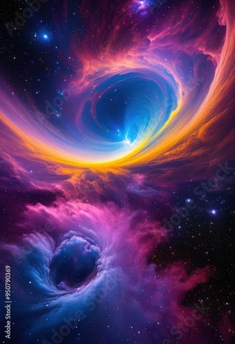 stunning cosmic landscape showcasing vibrant nebula colors brilliant hues yellow blending celestial scene, astronomy, cosmos, galaxy, universe, space, stars