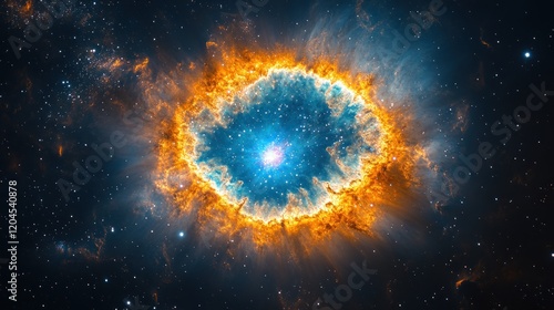 Stunning cosmic nebula with vibrant orange and blue colors, showcasing stellar formation and galactic beauty