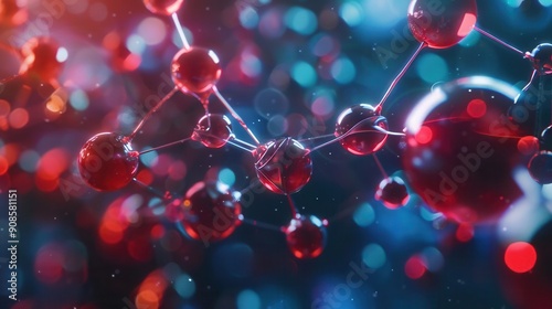Stunning depiction of molecular structures with vibrant red and blue lights