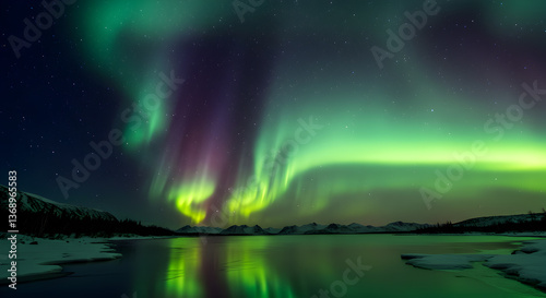 aurora borealis, aurora borealis, winter, night sky, natural phenomenon, green, purple, lake, ice, glacé, landscape, nature, outdoors, scenic, beauty, tranquil, arctic, polar, astronomy, atmosphere, celestial, darkness, vibrant, wilderness, cold, serene, magical, mesmerizing, breathtaking, environmental, ecology, travel destination, remote, untouched, pristine, clear sky, high-coloured