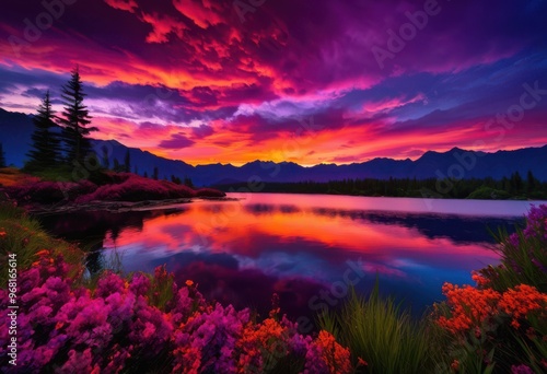stunning dusk landscapes featuring vibrant color combinations rich hues purple blending seamlessly sky, aesthetic, beautiful, breathtaking, captivating