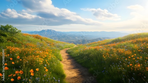 hiking, nature, landscape, sunset, view, wildflower, trail, adventure, serenity, peaceful, exploration, biodiversity, calmness, hillside, hidden
