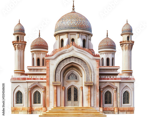 stunning Islamic mosque featuring intricate architectural details, domes, and minarets, showcasing religious significance and cultural heritage