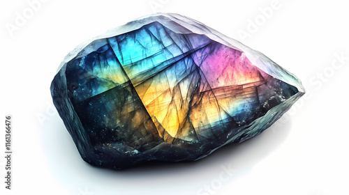 Stunning labradorite gemstone with vibrant iridescent colors on white background. Labradorite. Illustration