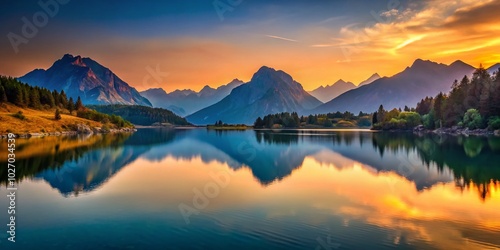 bergsee, dusk, serene, reflections, silhouette, nature, calmness, wilderness, landscape, montenegro, calm water, sunset, natural beauty, photo, travel, adventure, scenic view, tour tourism, picturesque, water, mountain, sky, evening light, stillness, wildlife, hiking, fotomontage, atmospheric